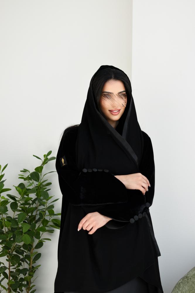 قماش العبايه : مخمل و قماش ميكانو واقف