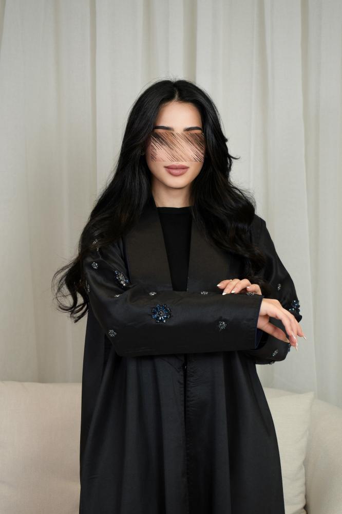 قماش العبايه : تفته سله بإضافة الكريستال بالشغل اليدوي الأنيق